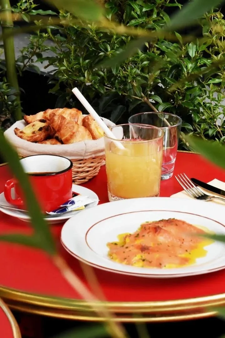 L'expérience totale : Assortiment de mini viennoiseries + Boisson chaude + Jus de fruits + Entrée + Plat + Dessert.